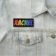 Cet amusement, caractéristiques de conception nommées vibrantes et multicolores d'étiquette le prénom commun "RACHEL", avec les lettres du nom ayant un spectre coloré d'arc-en-ciel comme le motif de coloration de gradient, sur un arrière - plan coloré par noir. Un nametag comme ceci pourrait être porté par un volontaire, un employé, ou un technicien qui est appelé Rachel, pour aider à identifier le porteur à d'autres. [~Z0000344]