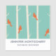 Un nom avec une illustration de bouleaux avec des orangers assis sur leurs branches. Arrière - plan vert rétro.