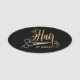 Hairstylist noir & or Nom du salon Elegant Nom d'entreprise étiquette . Design Caractéristiques Calligraphie ''Hair'''' en couleur or , deux ciseaux de coiffure en argent sur un arrière - plan noir. Personnaliser avec un nom. Parfait pour les coiffeurs, coiffeurs, salons de coiffure, etc.