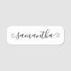 Créez votre propre étiquette de nom d'employé personnalisée ou monogrammée. Customisez la taille et la couleur du script de calligraphie manuscrite petite, courte et mignonne girly, selon les besoins. Modifiez la couleur ou les couleurs de texte de l'arrière - plan pour qu'elles correspondent à la marque de votre entreprise.