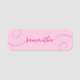 Une signature moderne girly chic avec des touches de décoration super bouclées contre un arrière - plan de couleur solide rose clair personnalisable. Vous pouvez modifier la couleur de la police et laisser tomber l'ombre. Gardez les symboles au début et à la fin de votre nom pour créer les queues décoratives cool. Créez votre propre étiquette de nom unique pour votre bureau.