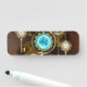 Turquoise lenses with antique watch with brass gears and golden keys on rusty, brown background. Steampunk style.