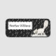 Cette étiquette de nom est noire avec des notes de musique blanches et un chat en train de se balader sur le dessus des touches de piano. Customisez votre nom avec le modèle dans le cadre blanc ondulé.