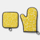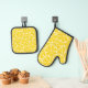 Ce porte-pot et son ensemble de mitt au four sont dotés d'un motif de tranches de citron qui se chevauchent pour un look amusant et irrésistible.