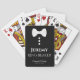 Ce jeu amusant de cartes à jouer est conçu comme un cadeau pour le porteur de bague mariage. Les dossiers sont noirs avec une cravate arc blanche et des boutons. Le texte est blanc et dit "porteur d'anneau" avec une place pour son nom, le nom du couple et la date du mariage. Un grand cadeau pour remercier votre petit homme d'avoir fait partie de votre fête de mariage.