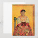 Femme italienne (Agostina Segatori) de Vincent van Gogh est une peinture à l'huile post-impressionniste d'art ancien représentant la vie quotidienne d'une femme assise dans un fauteuil sur un fond jaune vif. Le sujet féminin (très probablement Agostina Segatori) est assis les mains jointes sur les genoux et porte une belle robe traditionnelle.
