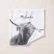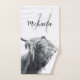 Portrait de vache Highland nom personnalisé monogramme initial en noir et blanc. Portrait photo d'un majestueux bétail des hautes terres lors d'une journée brumeuse avec un arrière - plan blanc en noir et blanc.
