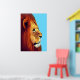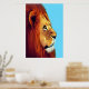 Portrait d'un lion mignon et adorable sur un arrière - plan bleu. C'est un art généré par l'IA.