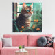 Ce portrait art numérique capture la personnalité amusante et aventureuse d'un chat tabby. L'oeuvre montre un chat tabby aux yeux vert vif, assis sur un rebord de fenêtre et entouré de plantes et de fleurs. Le chat regarde dehors avec une expression curieuse qui charmera n'importe quel spectateur. L'oeuvre est une illustration faite de couleurs audacieuses et d'une technique stylisée, ce qui en fait une pièce de déco maison particulière et attrayante. Apportez un peu de joie et de merveille à votre espace avec cette oeuvre d'art, et laissez le chat curieux être une partie délicieuse et animée de votre maison.