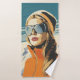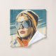 Graphique rétro cool comme une affiche des années 60. Un portrait d'une jeune femme avec une béanie dans la neige