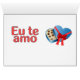 "Eu te amo" - "Je t'aime" en portugais. Donnez cette belle carte le jour de la Saint-Valentin ou quand vous voulez express votre amour. De petits coeurs sur des cordes sont posés sur un cadre en béton au soleil matinal, projetant de longues ombres.