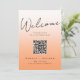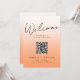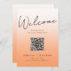 Ce panneau d'accueil mariage moderne et minimaliste présente une élégante façade en écriture. Le panneau comprend un tableau de sièges numérique avec un code QR. Le design joue avec la simplicité d'un design de typographie noir et blanc, ajoutant juste un soupçon de couleur fuzz pêche en utilisant un dégradé d'orange pêche. Un choix parfait pour les couples qui apprécient l'élégance épurée et moderne. Pour tout besoin de design spécial, n'hésitez pas à contacter directement le designer en envoyant un courriel à choosehappystudio@yahoo.com