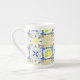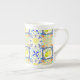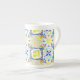 jolie porcelaine, bonne dimension effet brillant bien dans l'ensemble. Le motif et les couleurs sont réussis.Je trouve néanmoins dommage de ne pas occuper tout l'espace avc le motif car la partie rouge au dos de la tasse est trop présente et pas intéressante visuellement.