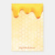 Ajoutez un peu de plaisir et d'humour à vos listes de courses d'été ou à votre bureau à domicile! Arrière - plan jaune et blanc avec un motif de nid d'abeille. Décoré de miel dégoulinant. Votre nom écrit avec un script de style à la main doré.