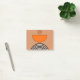 Ces notes Post-It ont un design géométrique d'un demi-cercle orange au-dessus des arcs noirs et blancs avec un cercle bronzé au-dessus de tout.