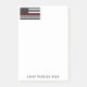 Ce 4" x 6" note la caractéristique une ligne rouge mince de sapeur-pompier noir et blanc conception de drapeau américain avec la bannière étoilée sur un arrière - plan noir et un nom pour que vous personnalisiez.