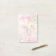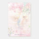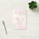 anges célestes avec ailes peintes en vol avec tête fleurie en haut et fleurs en bas sur arrière - plan rose avec un peu de bleu. Bordée de lignes dorées et a un modèle monogramme.
