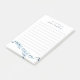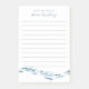 Personnalisez ce pavé de post-it côtier chic avec deux lignes de texte personnalisé en écriture bleu marine classique et en écriture serif. Le design comprend une école de poissons d'aquarelle bleu nageant le long du fond. Montré avec "du bureau de [Nom]".