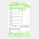 Bloc-notes de planification quotidienne imprimé avec nuages d'aquarelle vert pomme. Le bloc-notes propose un horaire de 7h à 18h, une liste à cocher, des notes et la planification des repas. Vous pouvez écrire la date du jour à l'angle supérieur chaque jour. Customisez en ajoutant votre nom dans un script de charme.