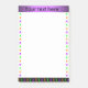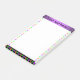 Ces notes ont un design accrocheur d'araignées, avec une bande violette sur le dessus pour vous de personnaliser avec votre propre texte ou votre nom. Les araignées sont dans les tons vifs d'orange, de violet et de vert, rampant le long de trois côtés des post-its.