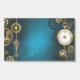 Arrière - plan turquoise, texturé, steampunk avec des engrenages en laiton et or, une clé en argent et l'horloge. Style Steampunk.