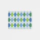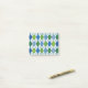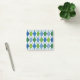 Ces notes Post-It ont un design art déco de formes en diamant fait d'angles superposés en lignes noires colorées dans les tons bleu et vert avec des lignes noires en diagonale donnant l'apparence d'un Jacquard