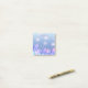 Beau design personnalisé post-it® notes avec plumes violettes et roses pastel et pétillantes sur un arrière - plan bleu dégradé. Le texte est entièrement personnalisable.