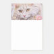 Des notes collantes avec une belle illustration. Un chat blanc aux cheveux longs qui a l'air royal et élégant. Entouré de fleurs roses, de bijoux en or et en diamant.