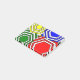 Ces notes ont une conception Bauhaus d'hexagones concentriques se chevauchant en rouge, jaune, bleu et vert.