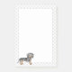 Illustration originale de Destei d'un mignon poil court noir et tan dapple couleur robe chien de race Dachshund. Le milieu est blanc tandis que les frontières ont un motif d'empreintes de pattes de chien gris.