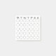 Un mini calendrier flexible avec des cercles sur une note Post-it®. Utilisez ceci pour enregistrer toute activité quotidienne. Ajoutez à votre journal ou à votre planificateur ou à tout endroit où vous souhaitez garder des notes collantes. Gardez un registre quotidien de vos réalisations tout au long du mois avec cette grille de calendrier circulaire de suivi des habitudes. Une façon simple de suivre vos habitudes et vos objectifs. Le calendrier est marqué avec les jours de la semaine. Vous pouvez customiser ceci pour commencer à n'importe quel jour ou modifier les lettres pour les jours de la semaine en Deutsch, Español, Français, ou Portuguêse Montré en noir sur blanc mais toutes les couleurs peuvent être customisées dans l'outil Design.
