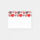 Ce bloc-notes Post-It a un design Valentin de coeur répétitif avec différents graphismes à l'intérieur sur un champ de blanc.