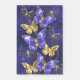 Composition des luxueux papillons saphir et bijoux en or sur arrière - plan bleu texturé.