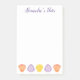 Publiez vos idées n'importe où avec ces notes représentant des coquillages colorés rouges, jaunes et violets en aquarelle, évoquant un voyage de peigne sur la plage. Personnalisez-le en ajoutant votre en-tête à l'aide des polices disponibles.
