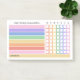 Bloc-notes pratique pour vos tâches ou vos responsabilités hebdomadaires avec cases à cocher pour chaque jour de la semaine et catégorie en couleurs arc-en-ciel. Personnalisez avec votre nom ou ce que vous voulez appeler le tableau de corvées hebdomadaire. Des notes collantes personnalisées sur la carte de corvette hebdomadaire dans de jolies couleurs arc-en-ciel. Responsabilités hebdomadaires Bloc-notes post-it en couleurs arc-en-ciel vous pouvez personnaliser avec votre nom. Des choses hebdomadaires à faire bloc-notes avec des cases pratiques dans les jolies couleurs de l'arc-en-ciel pour égayer votre journée et vos tâches hebdomadaires et le rendre plus satisfaisant à cocher les cases chaque fois que vous avez terminé une corvée. Idéal pour tous les âges, les enfants, les ados et les adultes !