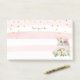 L'arrière - plan a des traits de brosse rose et blanc aquarelle et quelques parties scintillant [simulées] or sur le dessus. Dans le coin, vous voyez une adorable illustration de licorne de bébé avec des fleurs délicates (que vous pouvez déplacer et redimensionner si vous cliquez pour modifier à l'aide de l'outil de conception). Votre nom est écrit en belles lettres cursives.