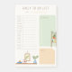 Cet élégant customisé quotidiennement à faire liste Post-It Notes est parfait pour planifier votre horaire quotidien. Un moyen simple mais efficace de planifier et de se souvenir de votre liste de choses à faire en une journée. Personnalisez-vous avec votre nom ou tout texte, ou laissez vide et écrivez tout ce que vous voulez. Les cases à cocher et les lignes vous aident à garder le suivi de toutes vos tâches importantes dans un délai quotidien!