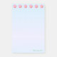 Belles fleurs roses sur des Post-it Notes à dégradé bleu clair.