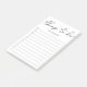 Le pavé de notes post-it personnalisé chic en noir et blanc éclatant comporte des "choses à faire" en haut dans la typographie de script lettrée. Personnalisez avec votre nom ou choix de texte sous, ou laissez vide si vous le souhaitez. 11 lignes avec cases à cocher vous aident à garder le suivi de toutes vos tâches importantes!