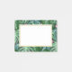 Des notes collantes réalisées avec une image de grands feuilles tropicaux verdoyants et verdoyants avec une pointe de rose derrière. Un cadre blanc avec une fausse bordure en feuille d'or superposée.