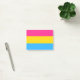 Le drapeau de la fierté pansexuelle a été conçu comme un symbole pour la communauté pansexuelle à utiliser. Il est similaire au drapeau LGBT, qui est utilisé comme symbole pour les lesbiennes, gays, bisexuels, transgenres et tous les autres membres de la communauté. Le drapeau sert à accroître la visibilité et la reconnaissance de la communauté pansexuelle et à la distinguer de la bisexualité. Il dispose de trois barres horizontales roses, jaunes et bleues. La bande rose symbolise les femmes ; le bleu, les hommes ; et le jaune, ceux d'un genre non binaire, comme l'homme, le bigender ou le fluide gendarme.