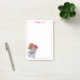 Mignon mini art d'une fille fantaisiste aux longs cheveux jaunes ondulants et portant une robe verte et des bas rayés. Elle tient un beau bouquet de roses rouges dans ses mains tendues. À l'origine réalisée en art numérique, Un moyen adorable de garder une trace de vos choses à faire.