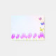 Fleurs violettes de tulipe et papillons colorés sur les tons bleu clair et rose Post-It Notes.