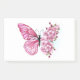 Flower arrangement of pink butterfly with rose Japanese cherry blossoms on white background.