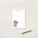 Cute mini art of a whimsical girl with long flowing yellow hair and wearing a green dress and striped stockings. She is holding a beautiful bunch of red roses in her outstretched hands. Originally made as digital art, An adorable way of keeping track of your things to do.