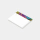 Ce bloc-notes Post-It a un design Black History de grands cercles formés de formes de gouttes de pluie et de cercles en rouge, jaune, violet, vert et turquoise.