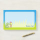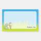 Une grenouille souriante sur l'herbe et l'arrière - plan du ciel vole un cône de glace avec sa langue. Texte personnalisé.