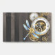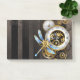 Cadran d'antiquités avec or et lances en laiton, décoré de libellules mécaniques sur arrière - plan brun rayé. Steampunk.
