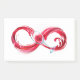 Infinity symbole of continuous stream of red pouring into glass glass glass on white background.