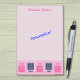 Inspirationnel et décalé, pour les affaires, pour la maison, pour l'école. La prochaine fois que vous aurez une note ou un rappel à écrire, regardez-la d'un point de vue différent, vivez votre meilleure vie, et "PENSEZ EN DEHORS DE LA BOÎTE". Logo en rose foncé et bleu marine; arrière - plan rose pâle; texte rose foncé.